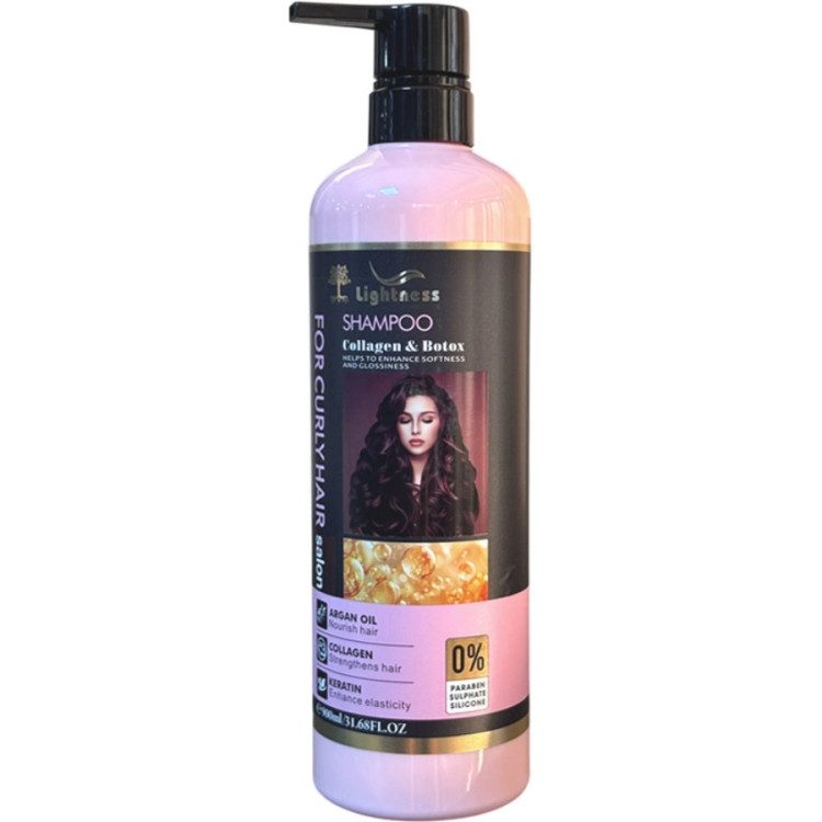 - شامپو موهای فر لایتنس حاوی کلاژن و بوتاکس با حجم 900 میلی لیتر