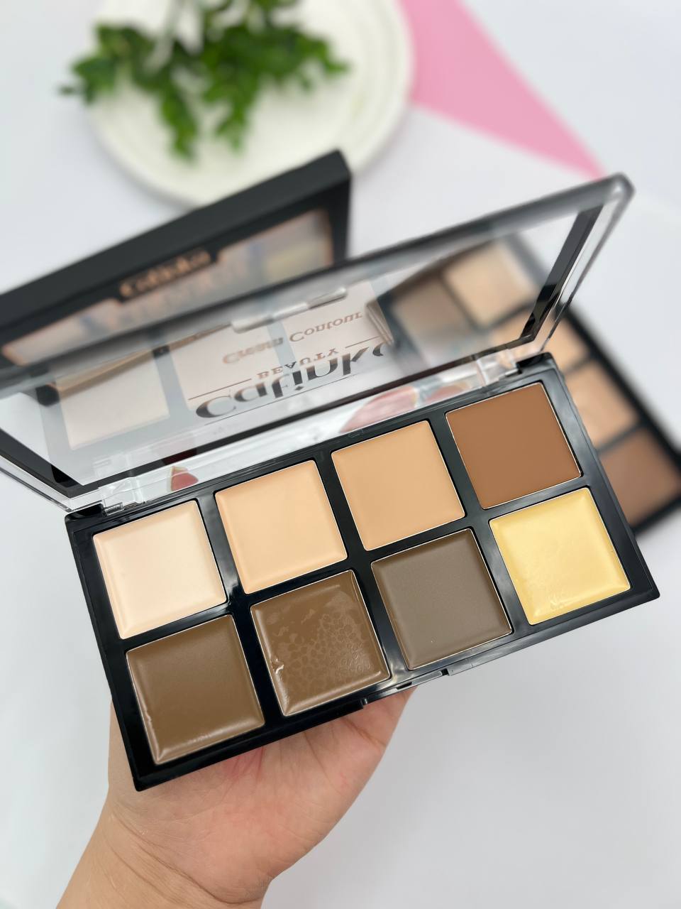 پالت های کانتورینگ صورت یکی از لوازم حرفه ای در آرایش میباشد که جذابیت اون رو بیشتر میکنه . این پالت 8 رنگ کانتورینگ مناسب برای همه رنگ پوستی ها میباشد که بر اساس رنگ پوستی که دارید و کاربرد رنگ های این پالت از اونها برای رفع نواقص صورتتون استفاده کنید . پالت های کانتور و کانسیلر جزو لوازم آرایشی حرفه ای هستند که نیاز به اموزش برای استفاده از اون هست و هر کسی نمیتونه به درستی از اونها استفاده کنه . شاید کانتور و کانسیلر ها برای ارایش ضروری نباشن اما استفا ده از اونها جذابیت آرایش صورت شما رو چندین برابر میکنه